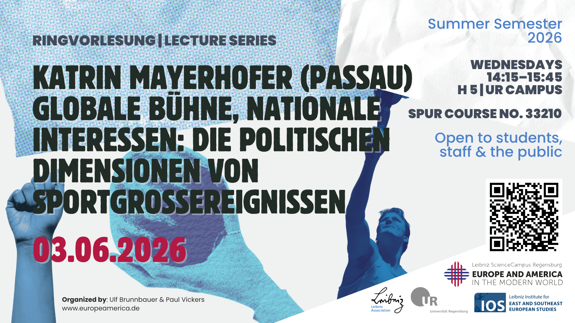 Dieser Vortrag ist Teil der Ringvorlesung „Sport, Politik, Konflikt“, organisiert vom Leibniz-WissenschaftsCampus „Europa und Amerika“. Jeder Termin steht allen Mitgliedern der UR und des IOS sowie auch der allgemeinen Öffentlichkeit offen. Studierende der UR können sich für die Veranstaltung anmelden und Leistungspunkte erwerben.